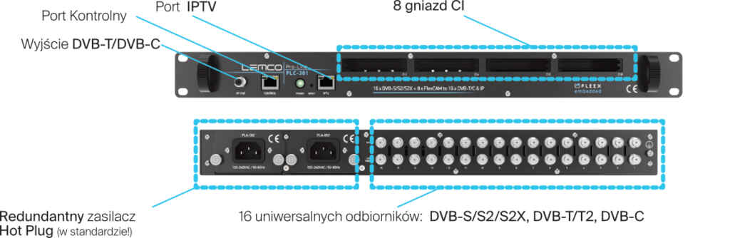 Nasze stacje czołowe umożliwiają odbiór i przetwarzanie sygnałów DVB-S, DVB-S2, DVB-S2X, DVB-T, DVB-C oraz strumieni IPTV (SPTS, MPTS) z internetu. Urządzenia te służą do profesjonalnego przekształcania sygnału na potrzeby transmisji telewizji hotelowej oraz systemów OTT i VoD.